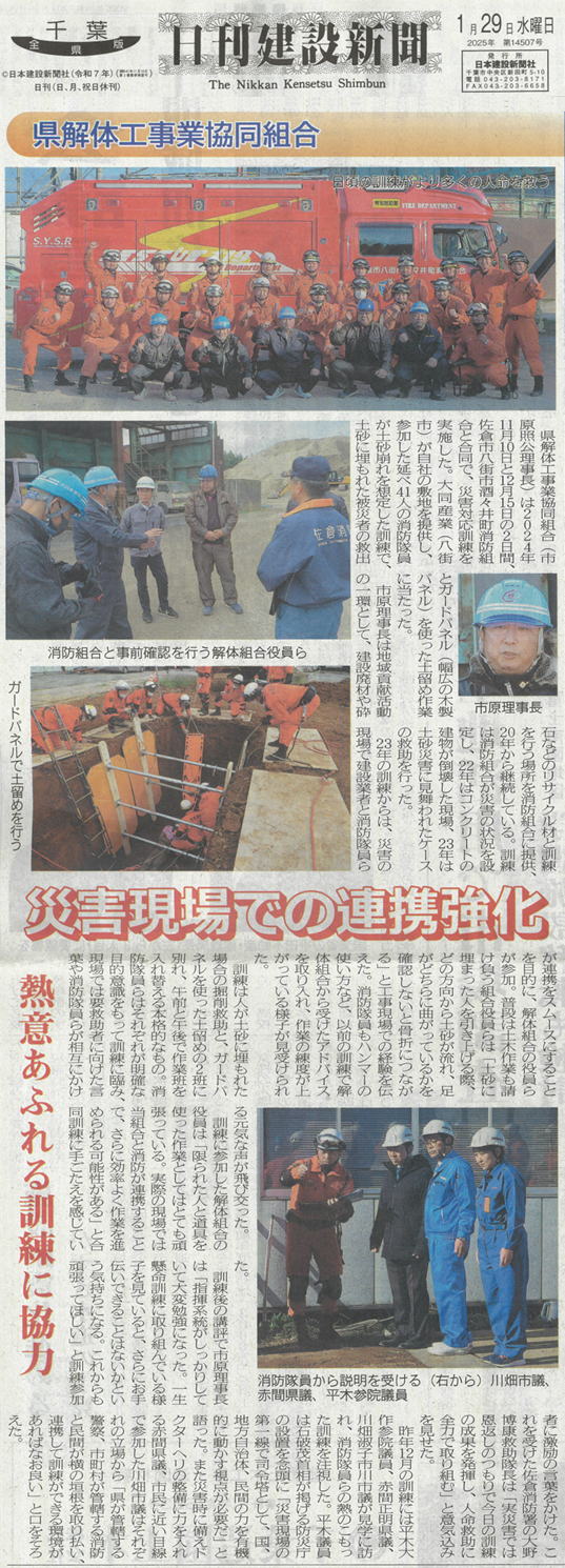 消防訓練実施時には新聞でも記事になりました。消防訓練で民間と合同での開催は珍しかったこともあり、下記紙面でこの合同訓練が紹介されています。